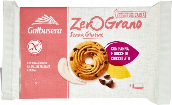 ZeroGrano frollini panna e gocce di cioccolato Galbusera Kruche ZeroGrano ze śmietaną i kawałkami czekolady.