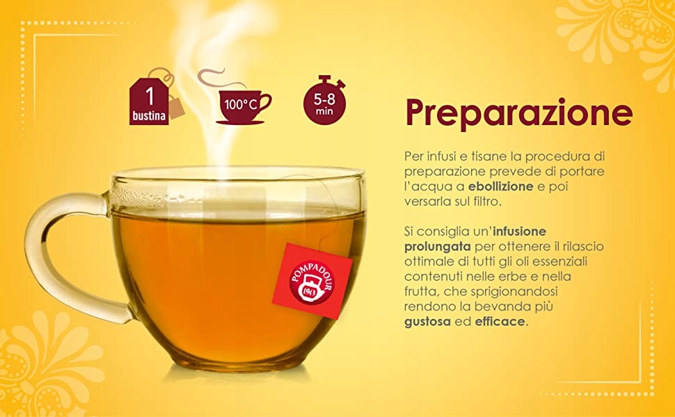 Aby na nowo odkryć przyjemność rozpoczęcia dnia od zdrowego, prawdziwego śniadania w domowym zaciszu iw całkowitym spokoju, RED FRUITS FOR BREAKFAST + 10 witamin to nowy owocowy napar o zniewalającym smaku truskawki i maliny wzbogacony o 10 witamin. Połączenie czerwonych owoców, które zawsze były znane ze swoich właściwości dzięki obecności flawonoidów i witaminy C, połączone z dodatkiem 10 różnych witamin, takich jak: witamina C i E, przeciwutleniacze i immunostymulanty oraz witaminy z grupy B (B1 , B2, B6, B12, niacyna, kwas pantotenowy, kwas foliowy, biotyna), niezbędne w prawidłowej diecie, czynią z tego naparu doskonałą alternatywę dla zdrowego i smacznego śniadania. Dzięki naturalnej słodyczy truskawek i malin ten napar podbije całą rodzinę. Ten produkt jest naturalnie bezglutenowy i odpowiedni dla diety wegańskiej. (20 saszetek po 2,5) 50g e