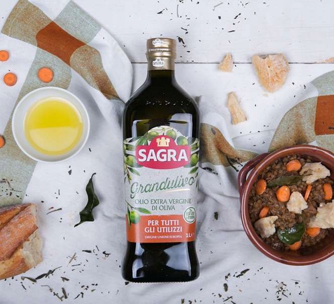 „Sagra Grandulivo Extra Vergine” odnosi się do oliwy z oliwek extra virgin marki Sagra, a konkretnie do linii Grandulivo, znanej ze zrównoważonego smaku.