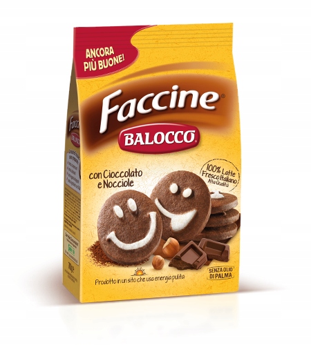 Ciasteczka Faccine są bogate w czekoladę i orzechy laskowe. Są jest idealnym ciastkiem na rozpoczęcie dnia z uśmiechem. Świetnie nadają się też na słodką przekąskę w ciągu dnia, idealnie smakują z mlekiem, herbatą oraz kawą. Można ich użyć również jako dekoracji deserów – na przykład lodów czy kremowych ciast.
